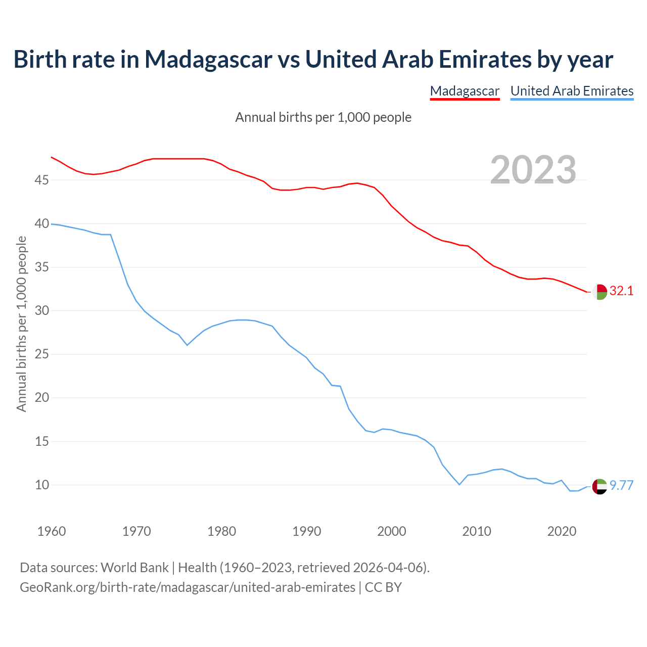 GeoRank.org/birth-rate/madagascar/united-arab-emirates | CC BY