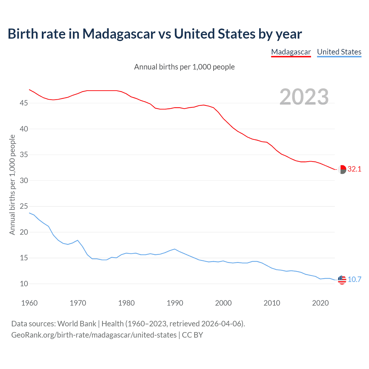 GeoRank.org/birth-rate/madagascar/united-states | CC BY