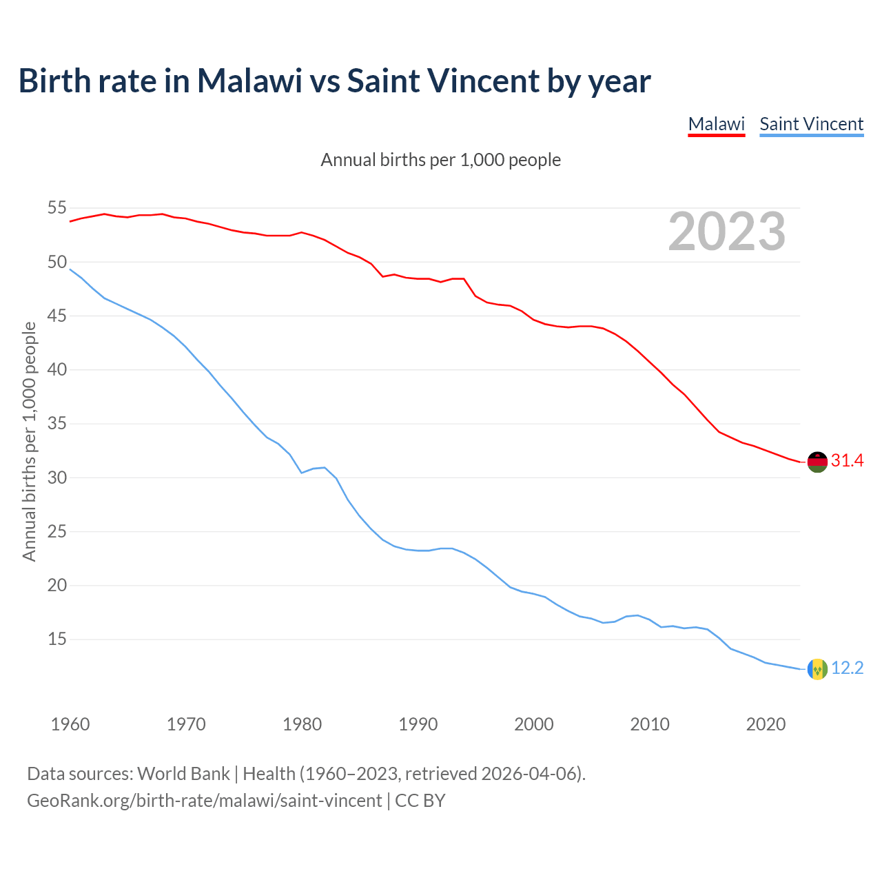 GeoRank.org/birth-rate/malawi/saint-vincent | CC BY