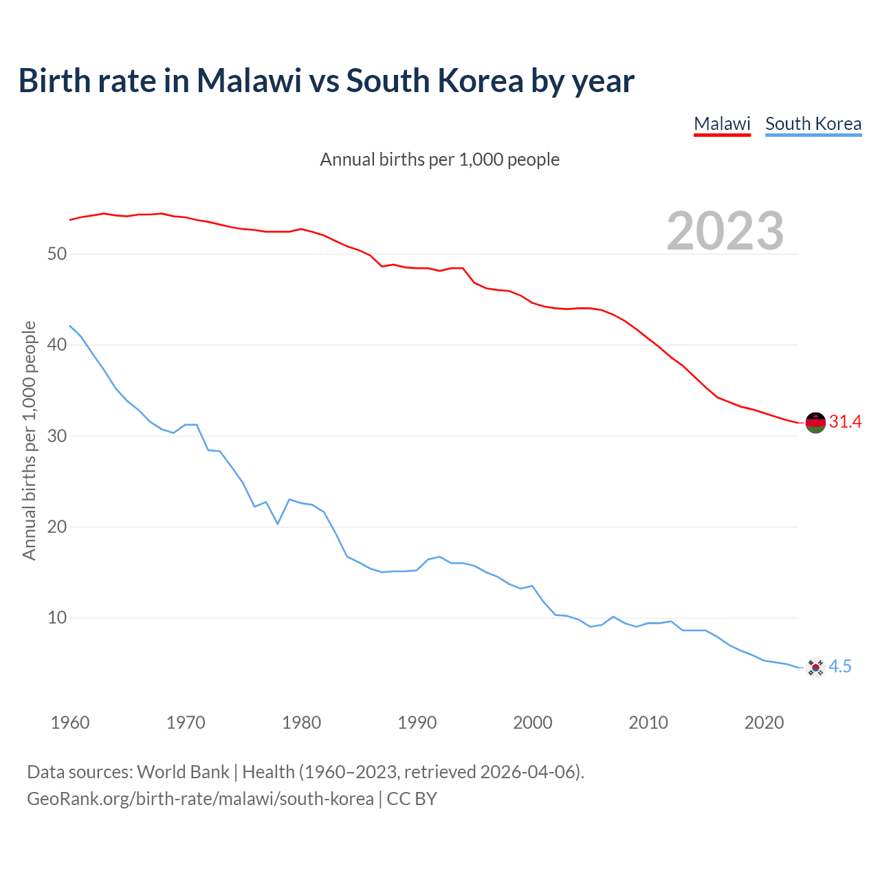 GeoRank.org/birth-rate/malawi/south-korea | CC BY