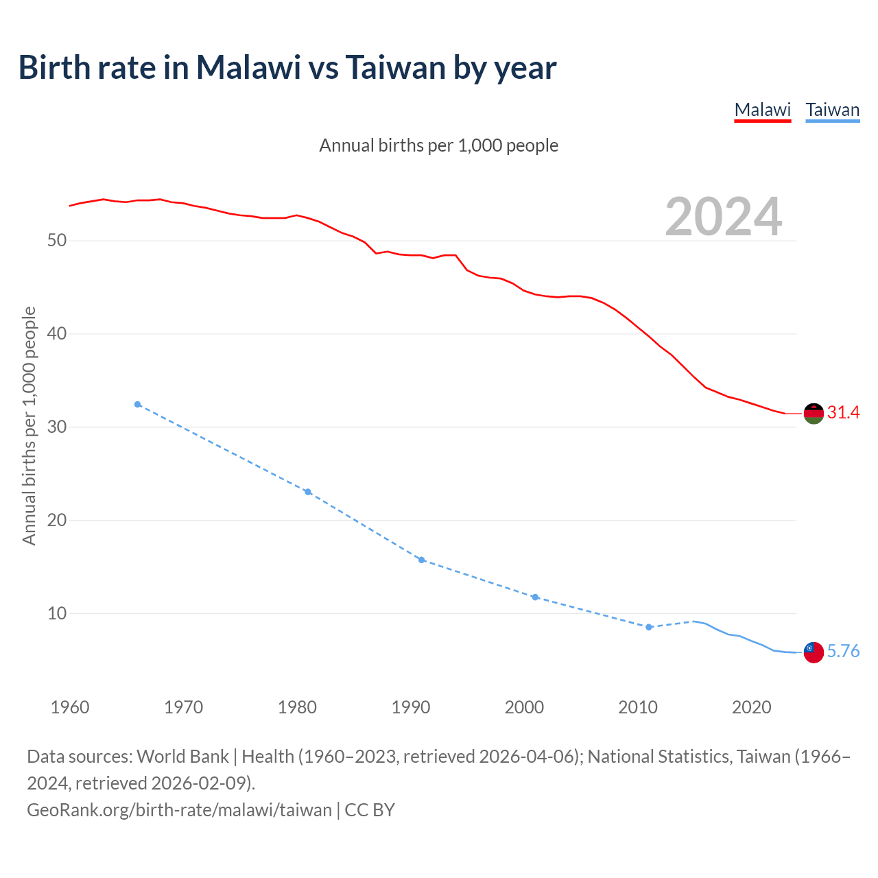 GeoRank.org/birth-rate/malawi/taiwan | CC BY