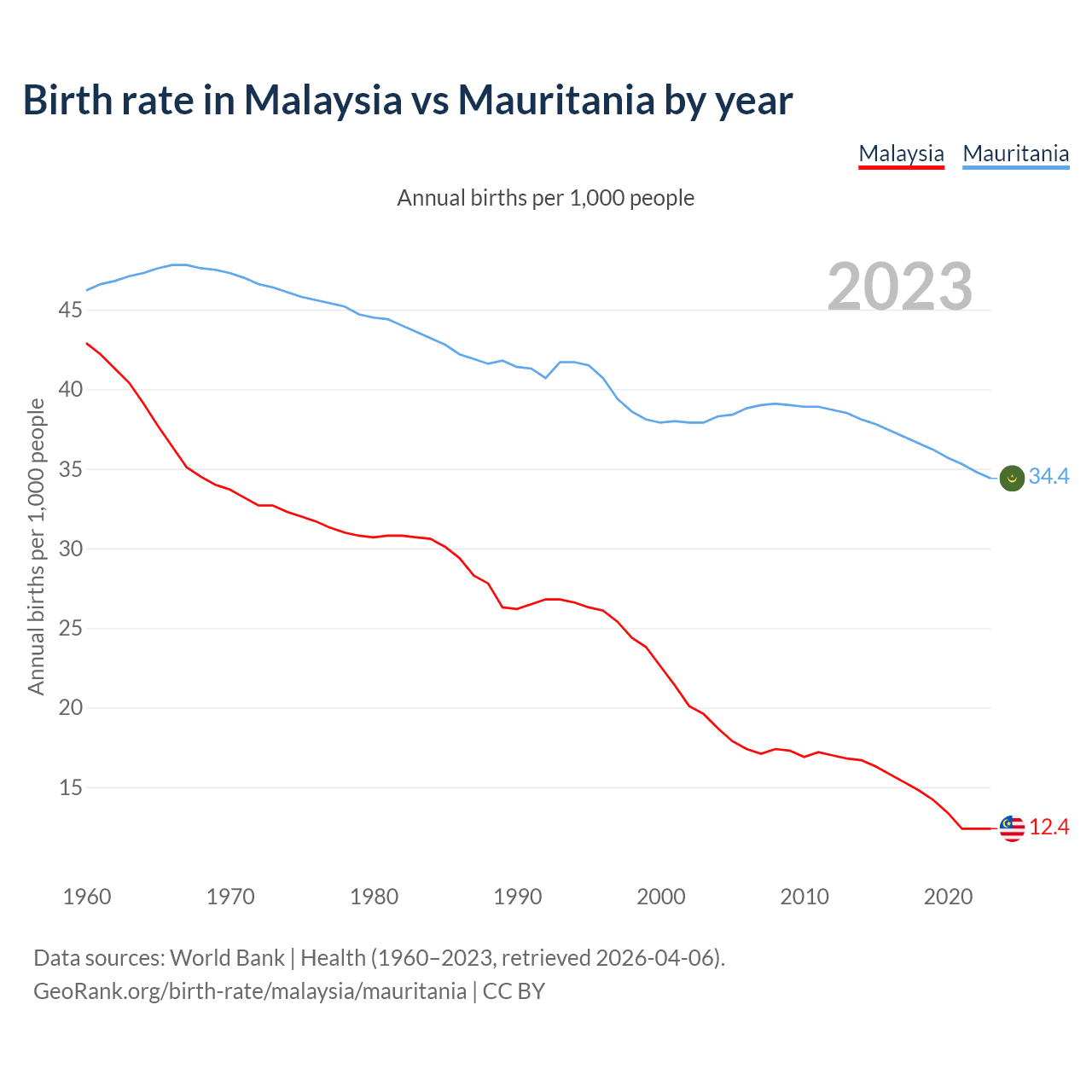 GeoRank.org/birth-rate/malaysia/mauritania | CC BY