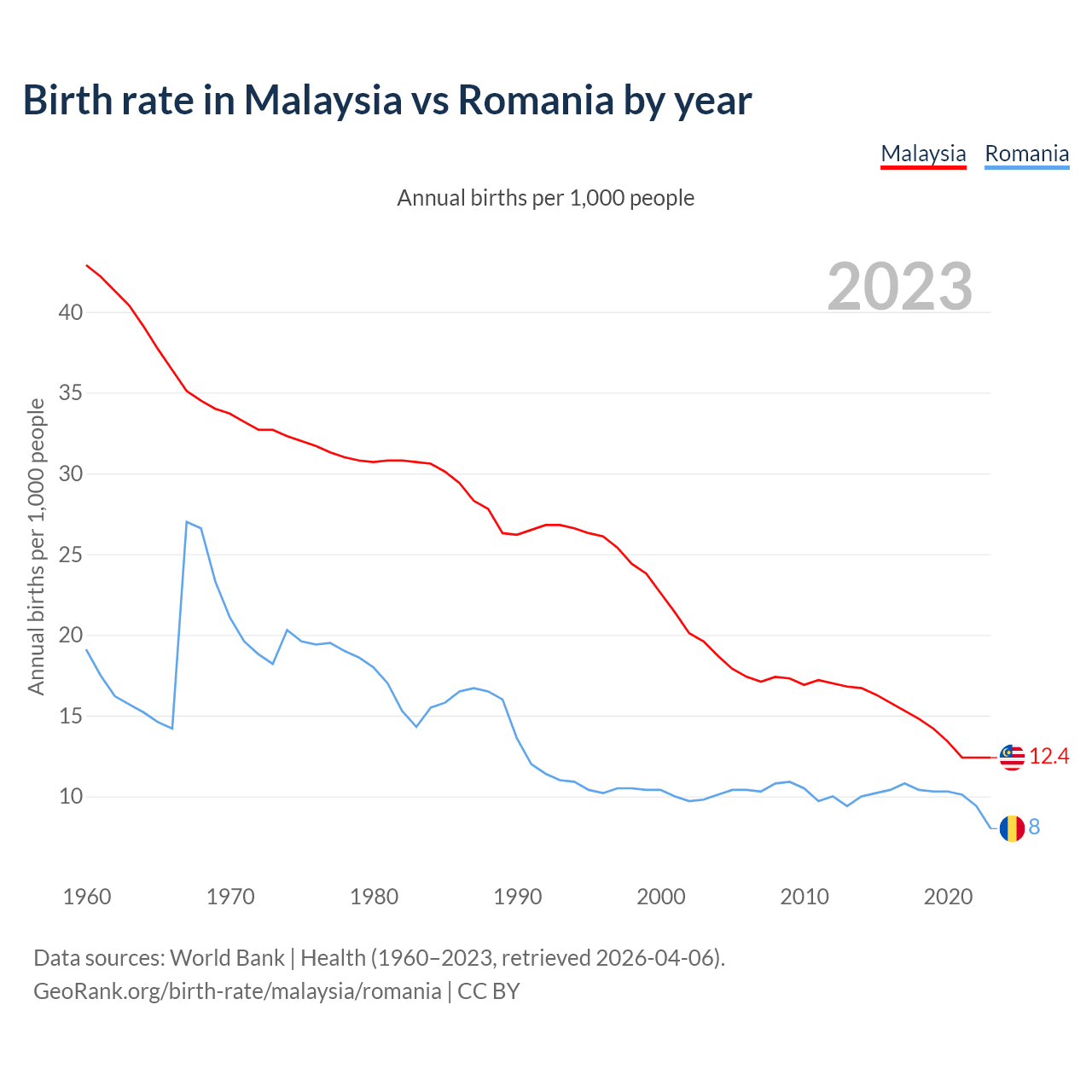 GeoRank.org/birth-rate/malaysia/romania | CC BY