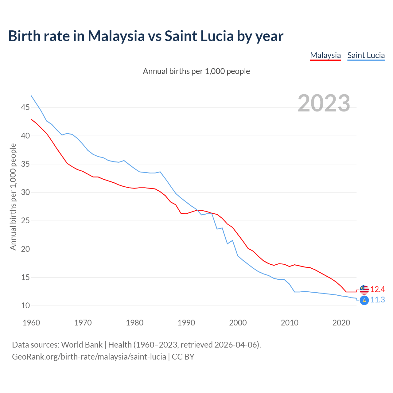 GeoRank.org/birth-rate/malaysia/saint-lucia | CC BY