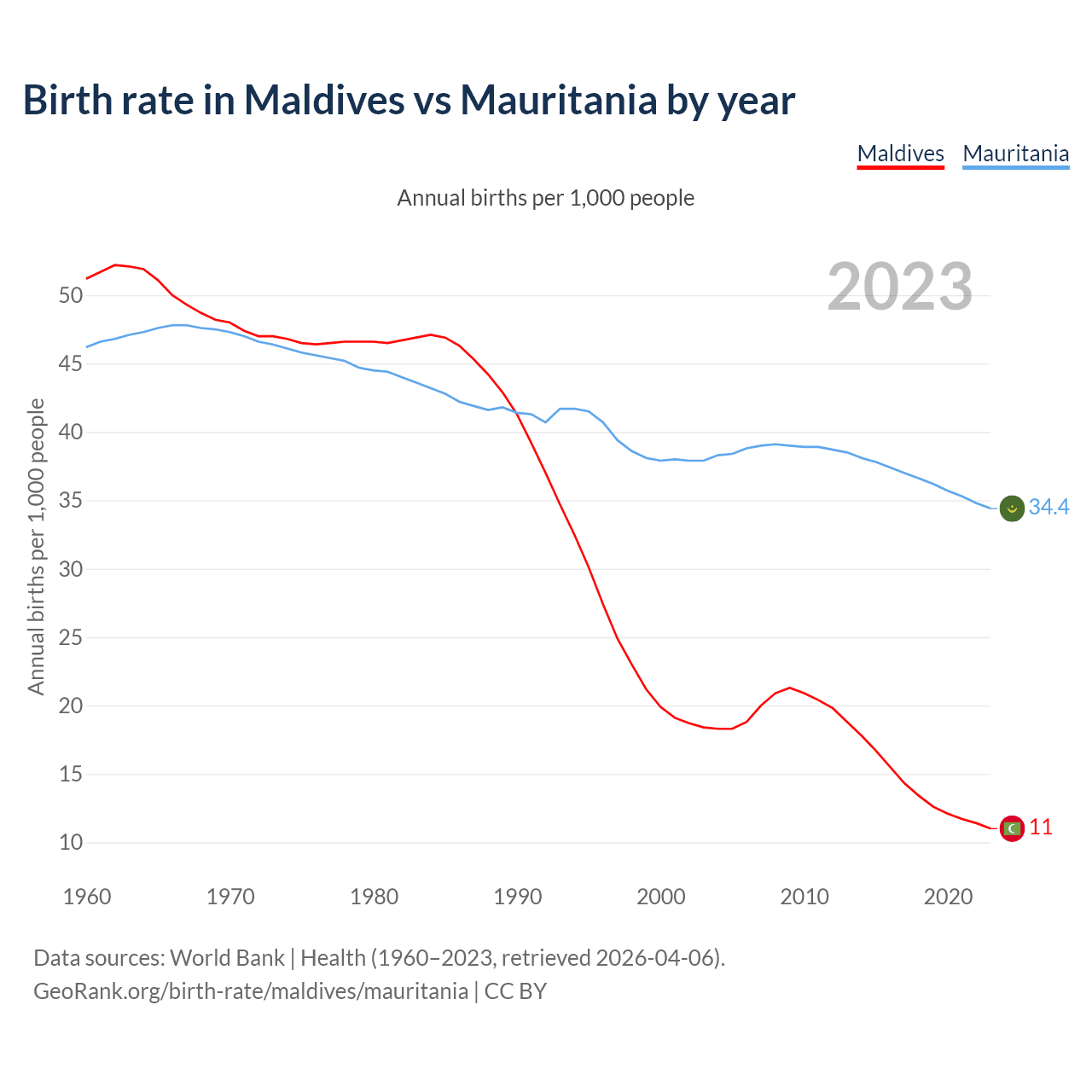 GeoRank.org/birth-rate/maldives/mauritania | CC BY