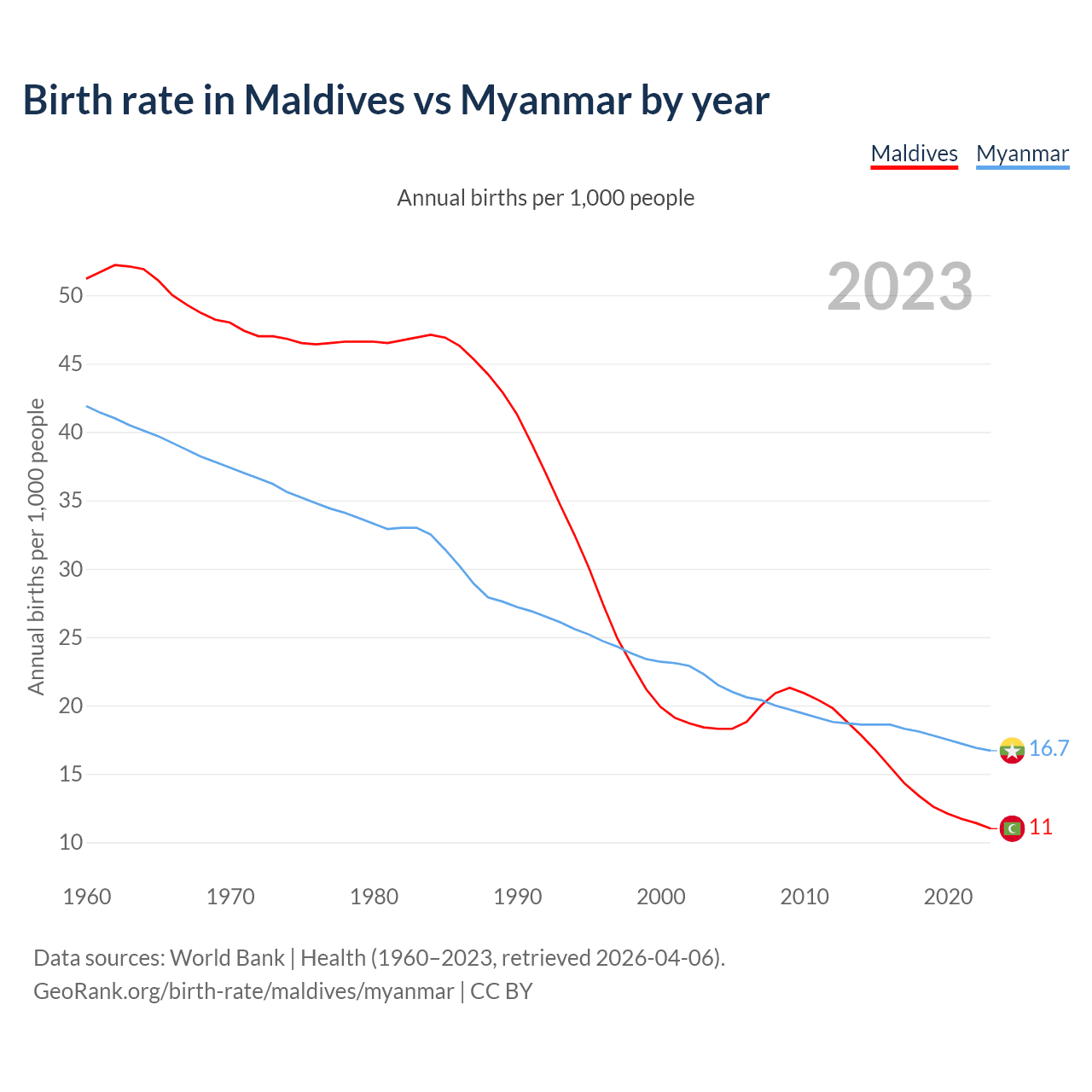 GeoRank.org/birth-rate/maldives/myanmar | CC BY