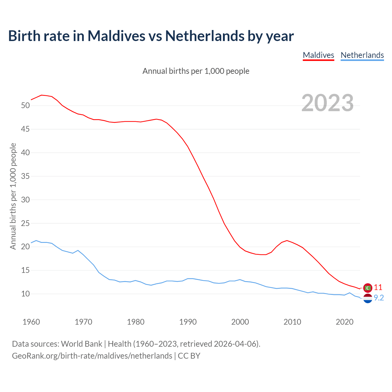 GeoRank.org/birth-rate/maldives/netherlands | CC BY