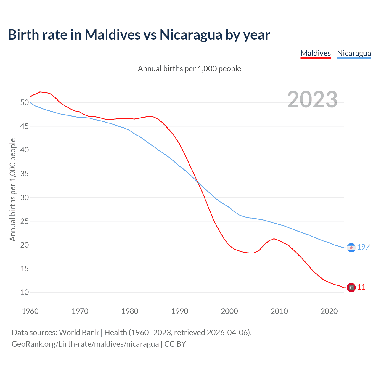 GeoRank.org/birth-rate/maldives/nicaragua | CC BY