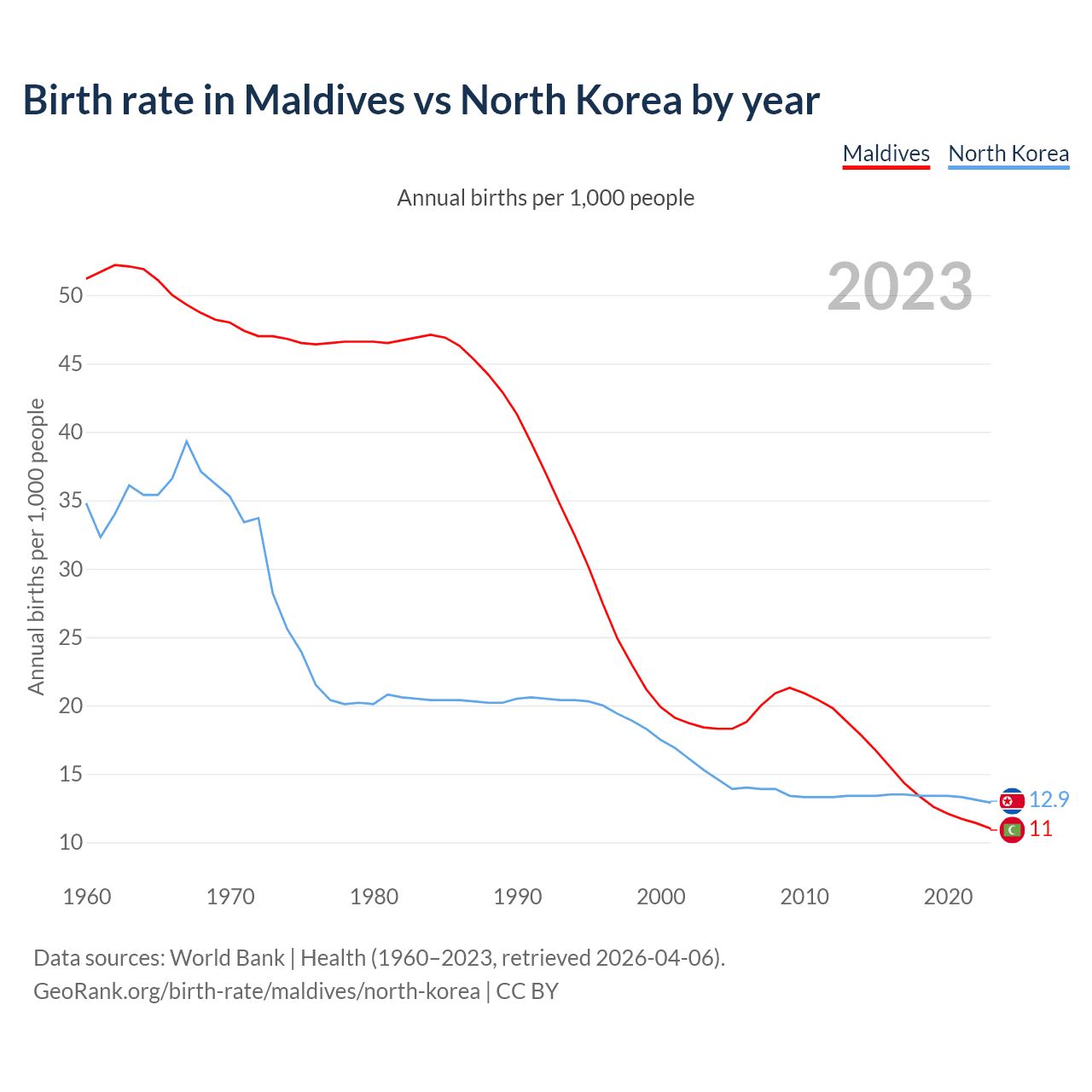 GeoRank.org/birth-rate/maldives/north-korea | CC BY