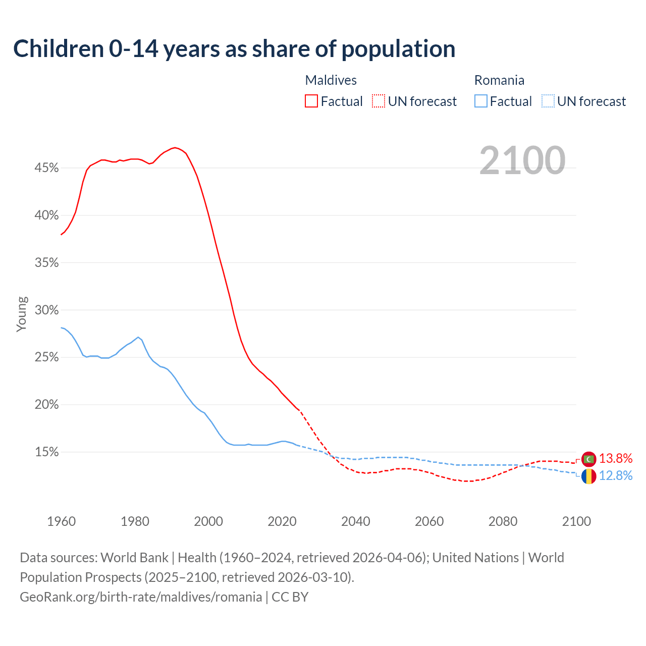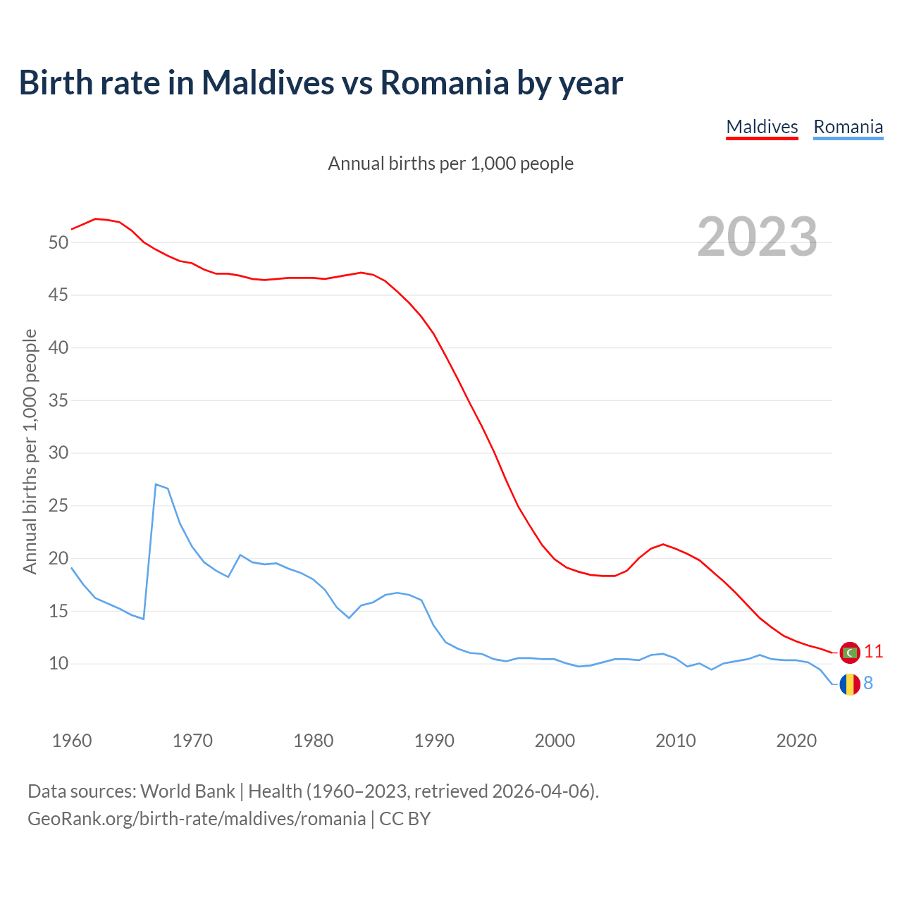GeoRank.org/birth-rate/maldives/romania | CC BY