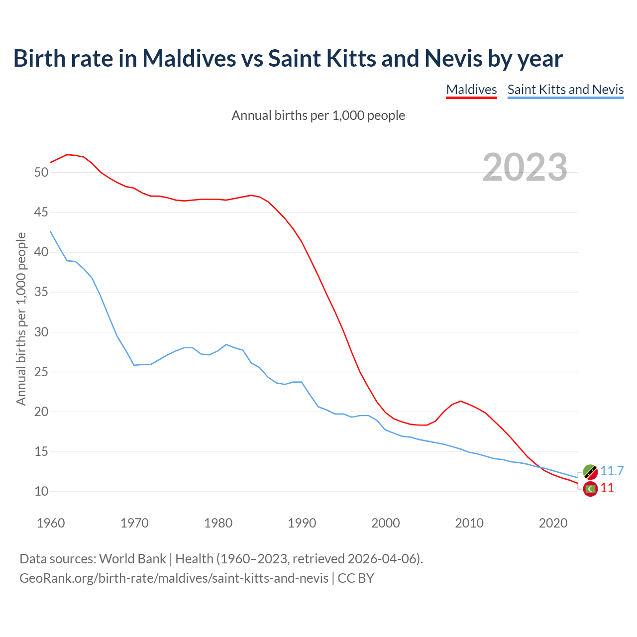 GeoRank.org/birth-rate/maldives/saint-kitts-and-nevis | CC BY