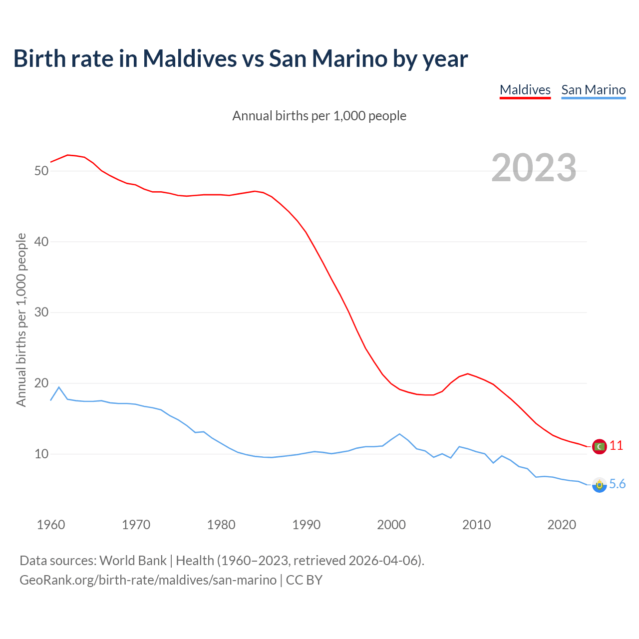 GeoRank.org/birth-rate/maldives/san-marino | CC BY