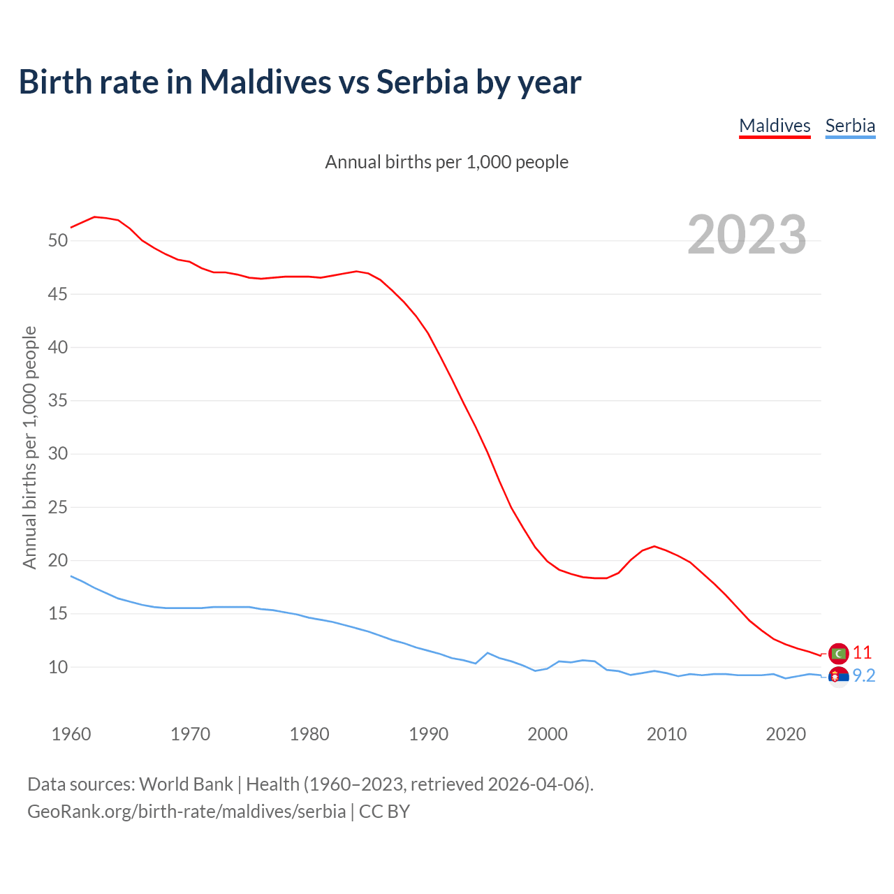GeoRank.org/birth-rate/maldives/serbia | CC BY