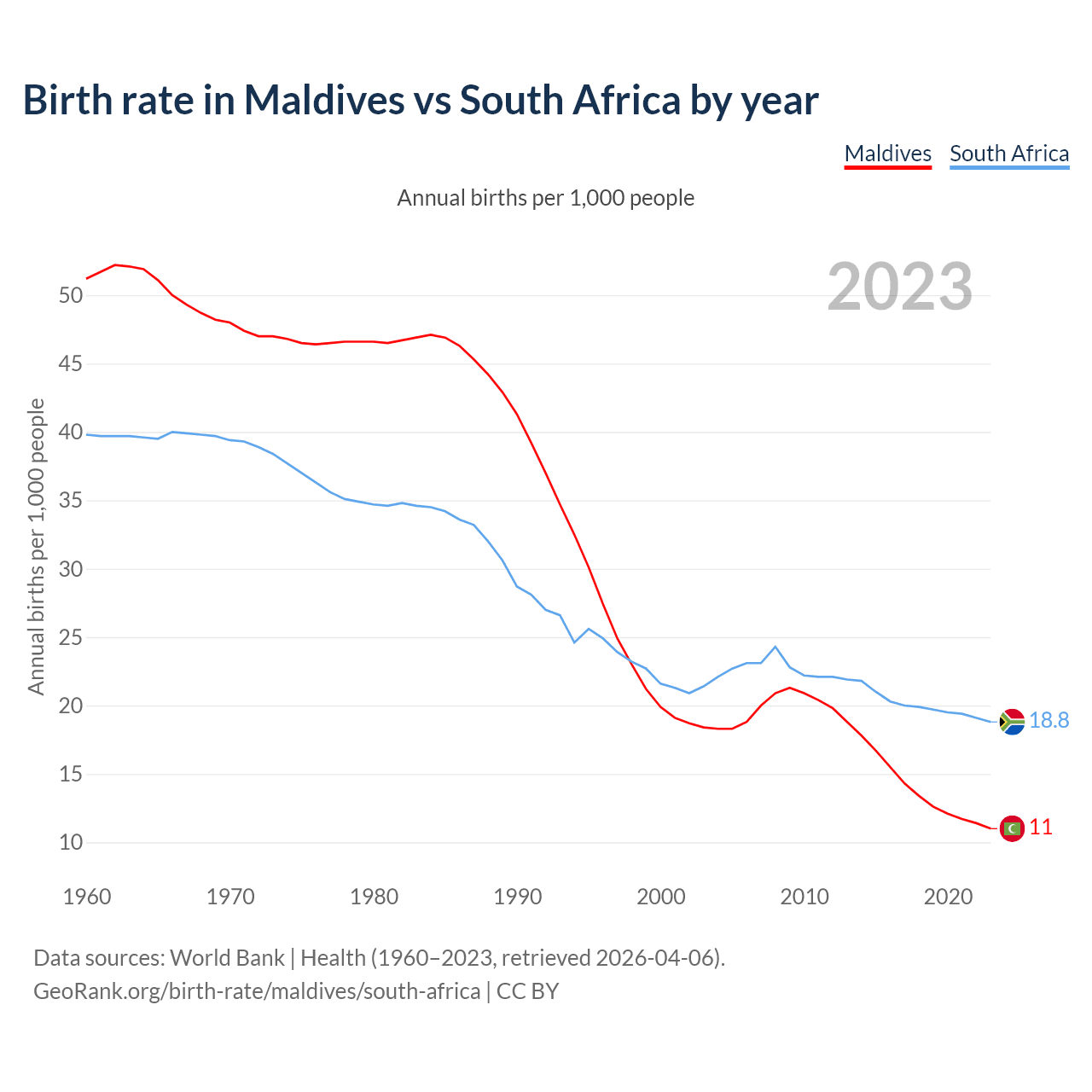 GeoRank.org/birth-rate/maldives/south-africa | CC BY