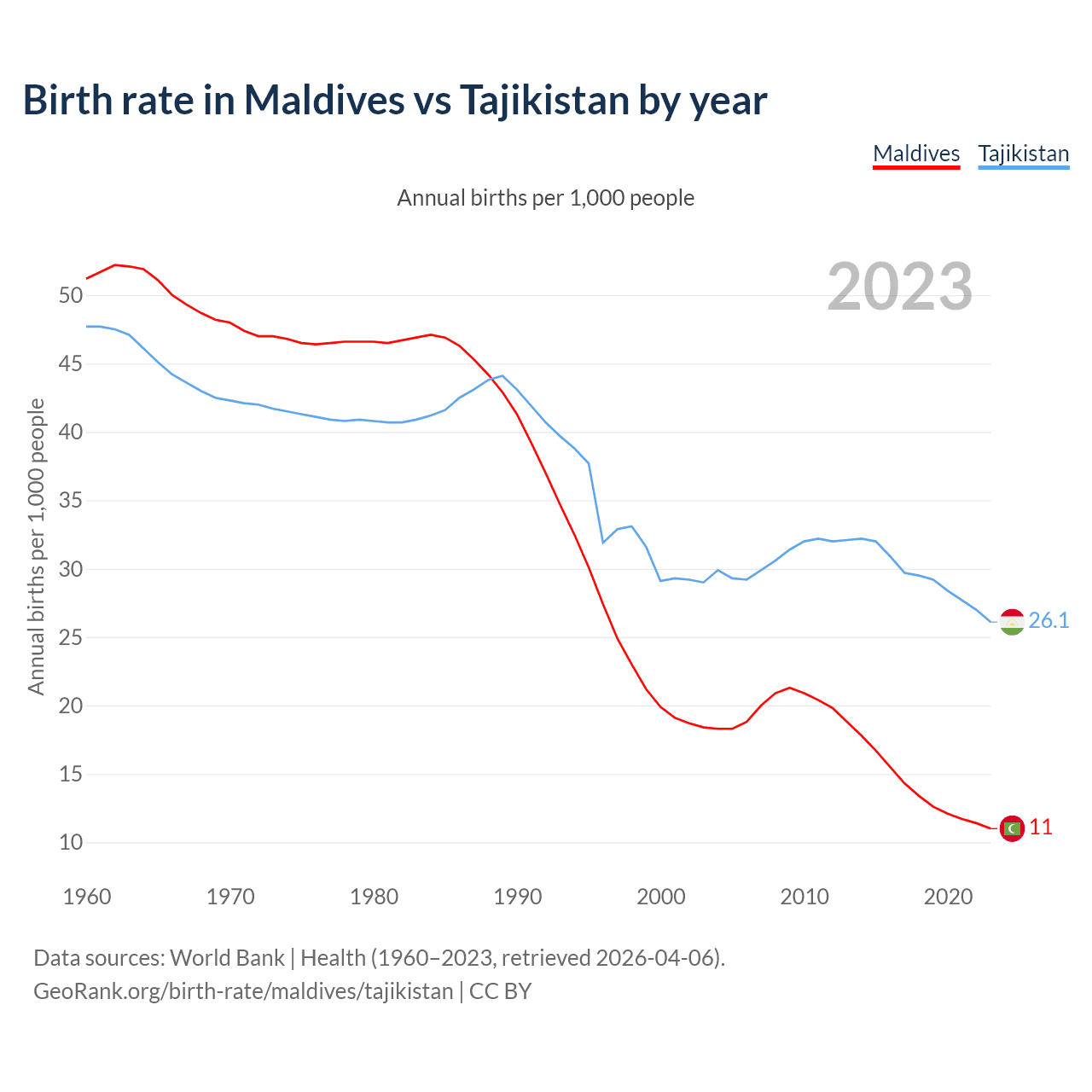 GeoRank.org/birth-rate/maldives/tajikistan | CC BY