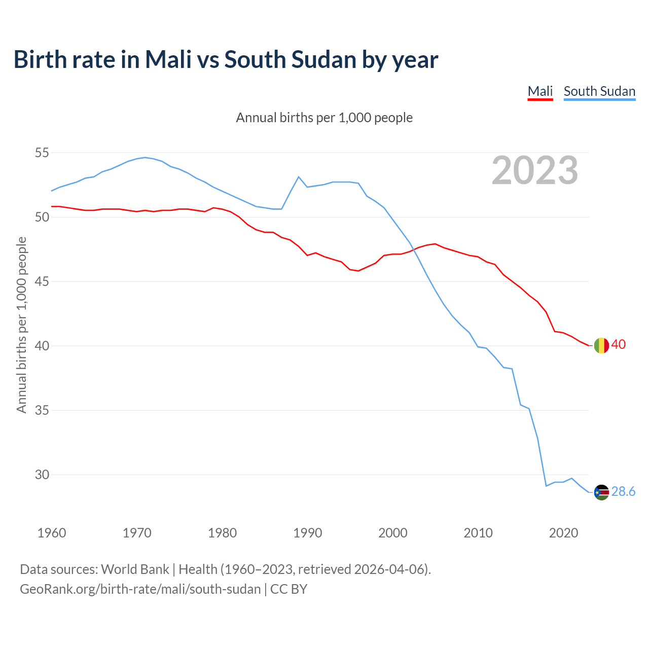 GeoRank.org/birth-rate/mali/south-sudan | CC BY