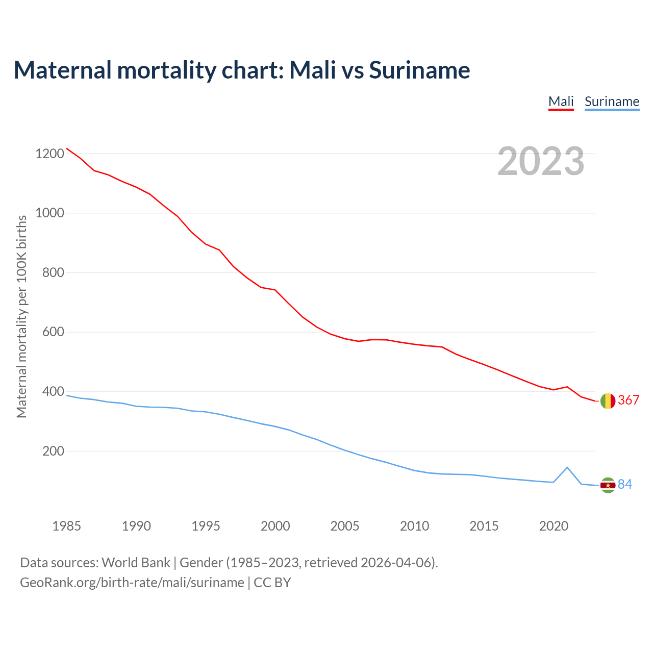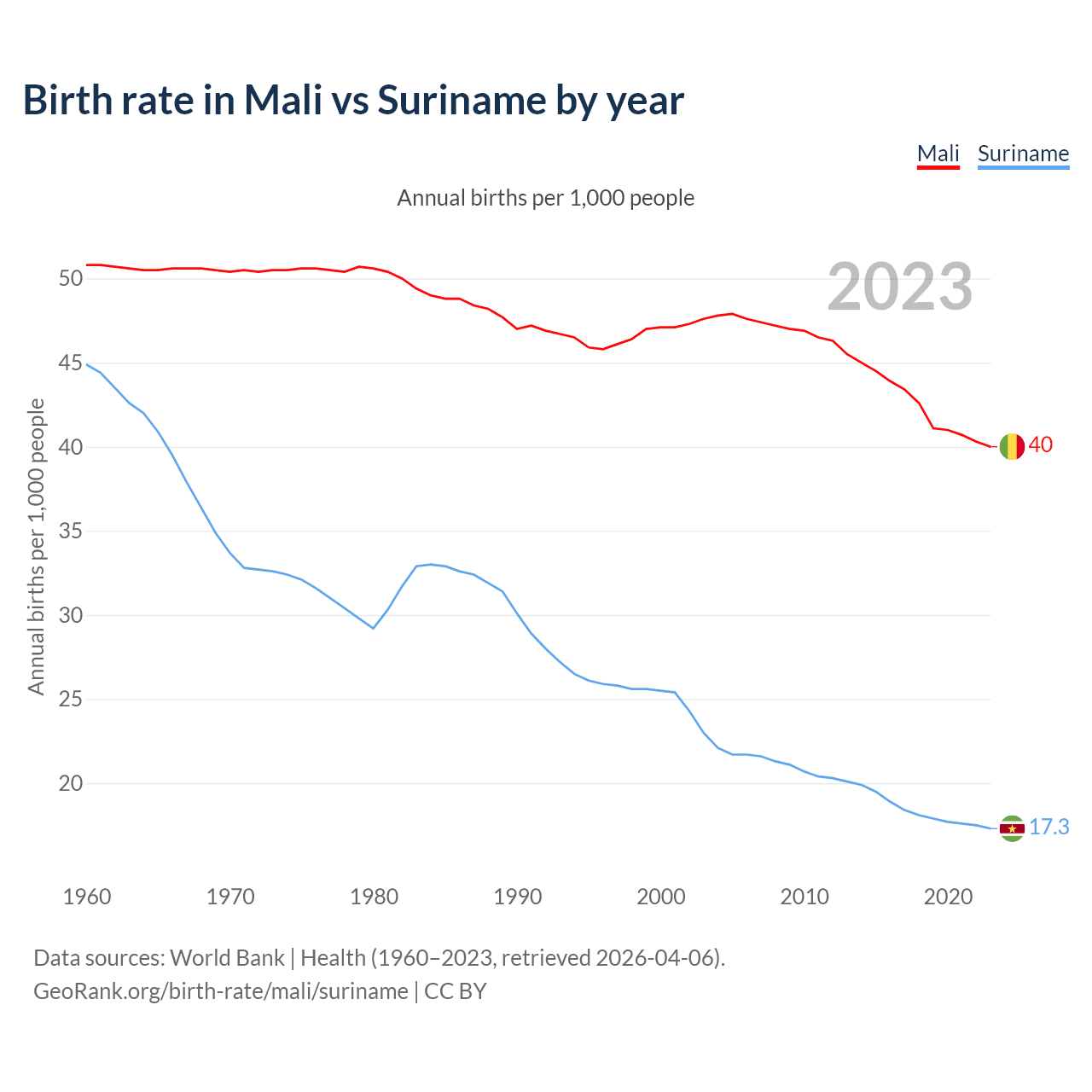 GeoRank.org/birth-rate/mali/suriname | CC BY