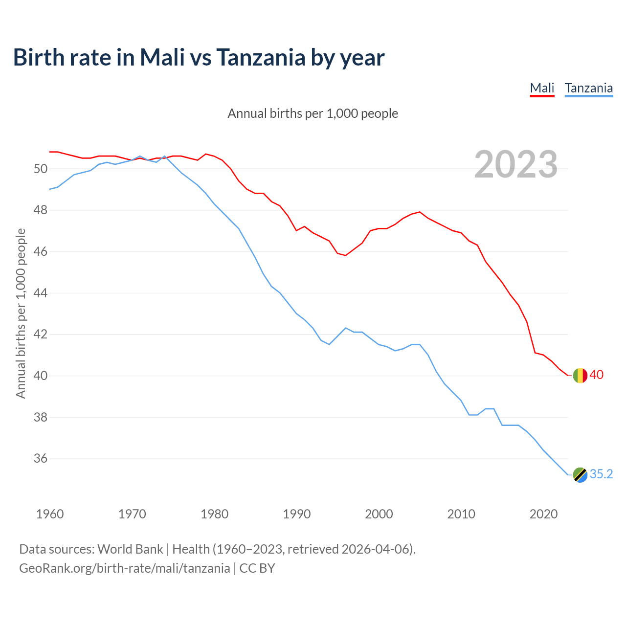 GeoRank.org/birth-rate/mali/tanzania | CC BY
