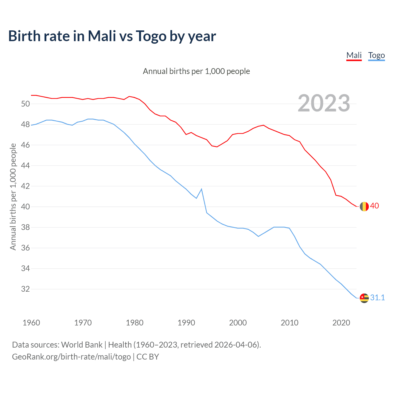 GeoRank.org/birth-rate/mali/togo | CC BY