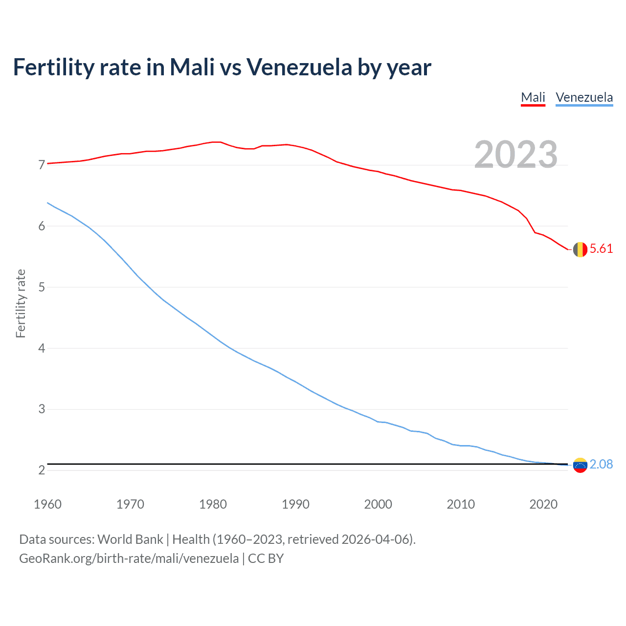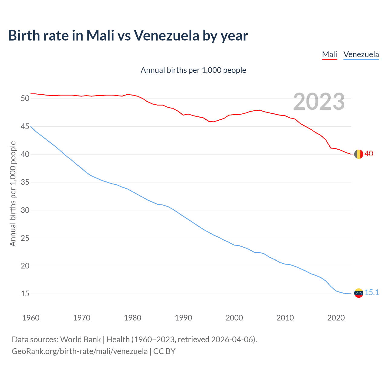 GeoRank.org/birth-rate/mali/venezuela | CC BY