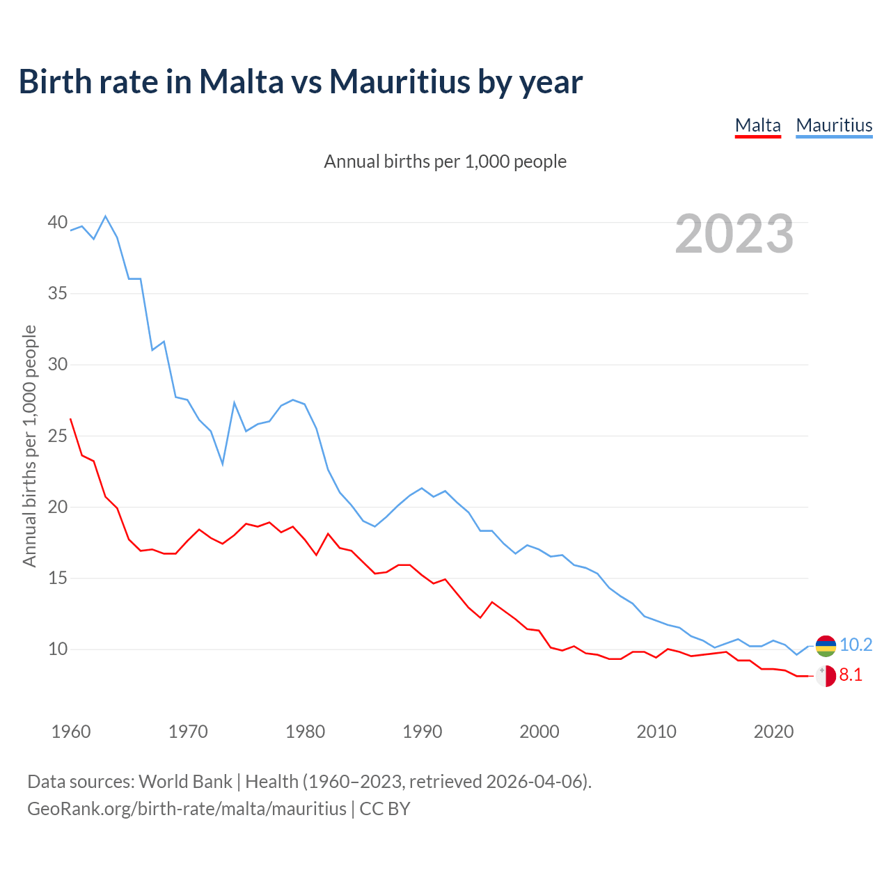 GeoRank.org/birth-rate/malta/mauritius | CC BY