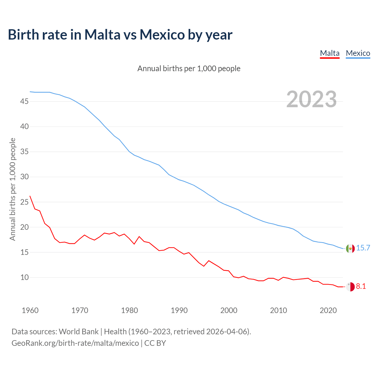 GeoRank.org/birth-rate/malta/mexico | CC BY