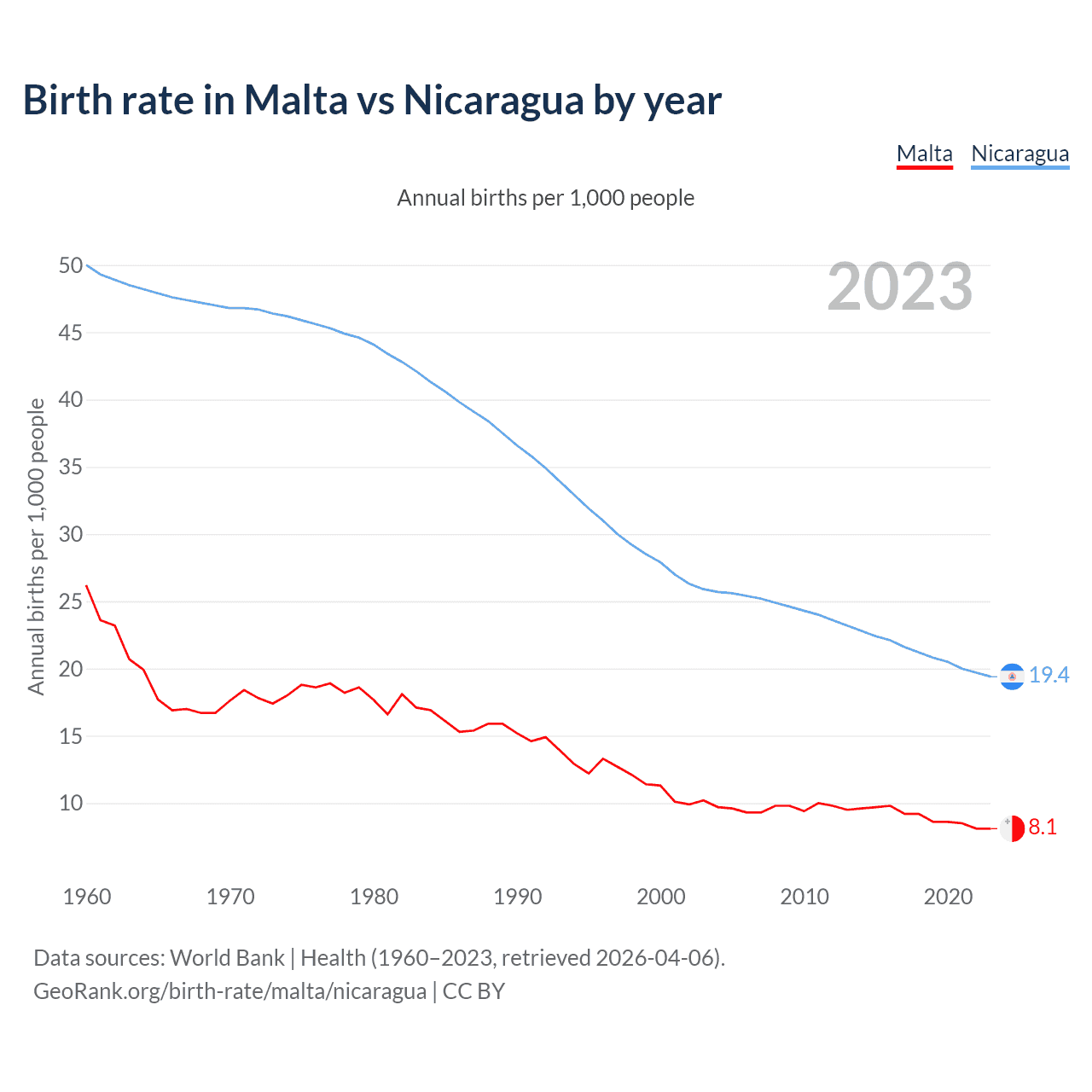 GeoRank.org/birth-rate/malta/nicaragua | CC BY