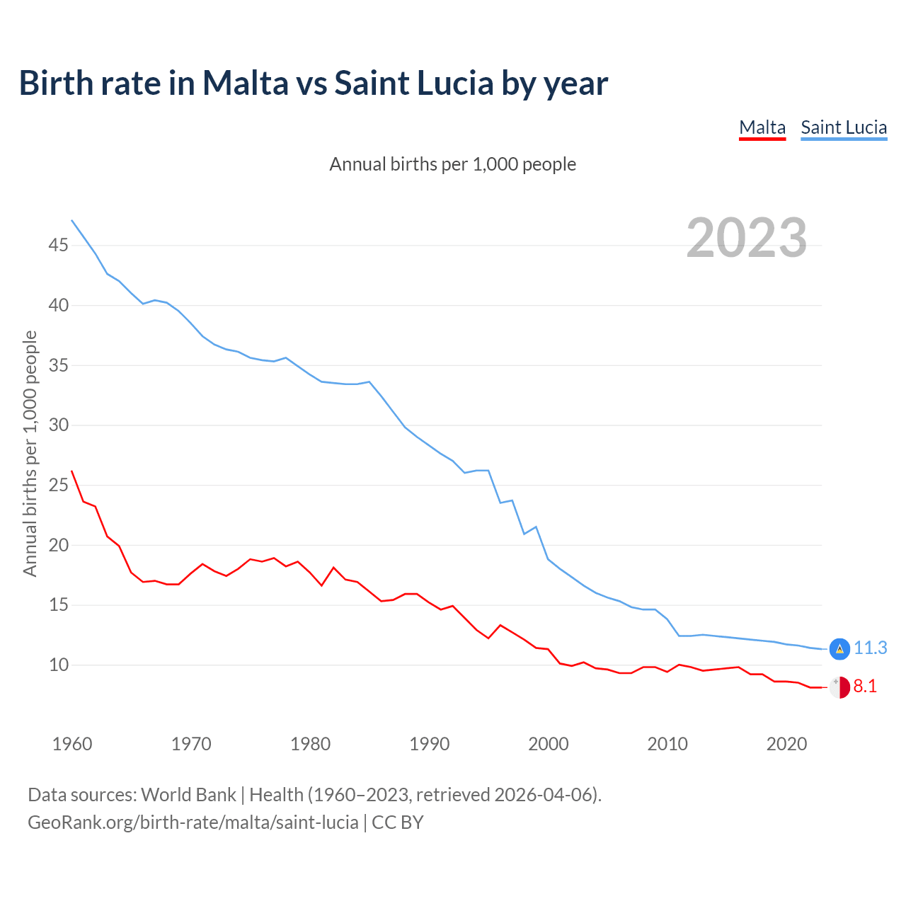 GeoRank.org/birth-rate/malta/saint-lucia | CC BY