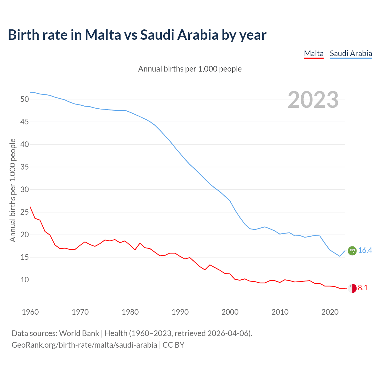 GeoRank.org/birth-rate/malta/saudi-arabia | CC BY