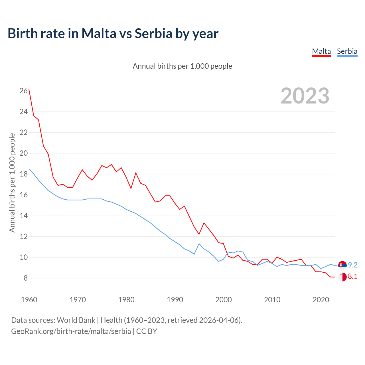 GeoRank.org/birth-rate/malta/serbia | CC BY