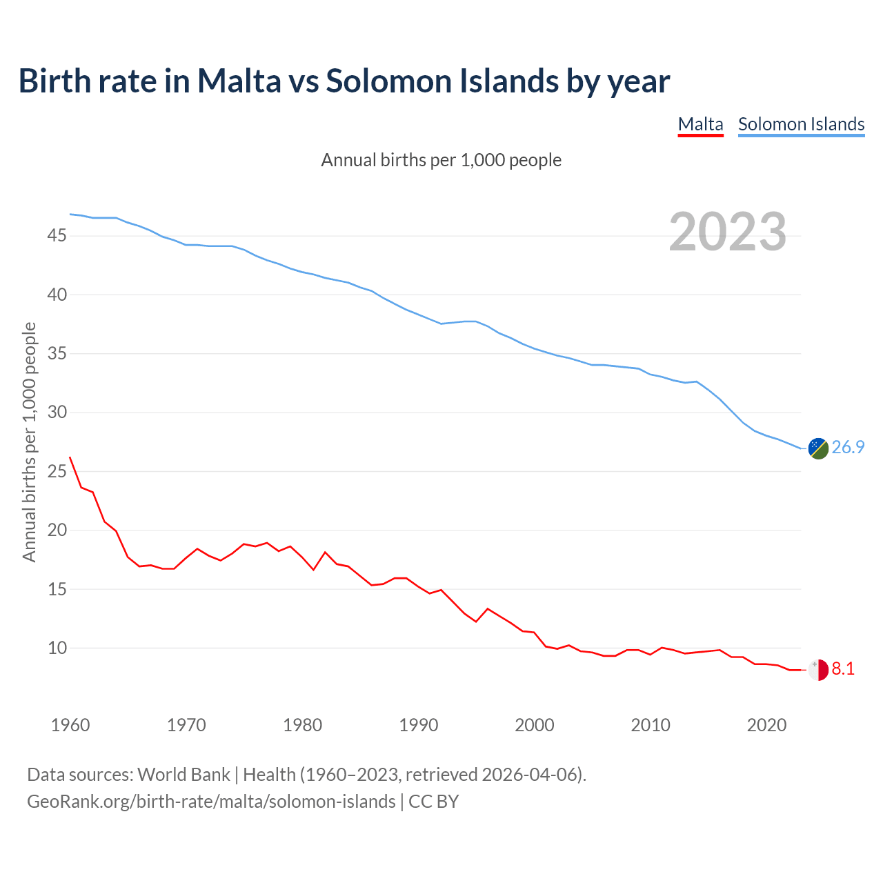 GeoRank.org/birth-rate/malta/solomon-islands | CC BY