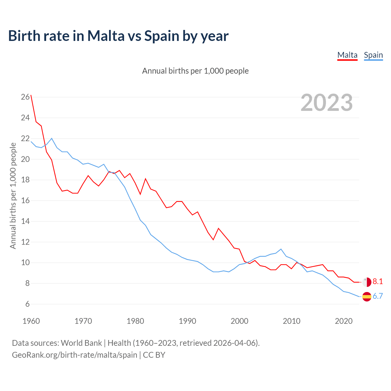 GeoRank.org/birth-rate/malta/spain | CC BY