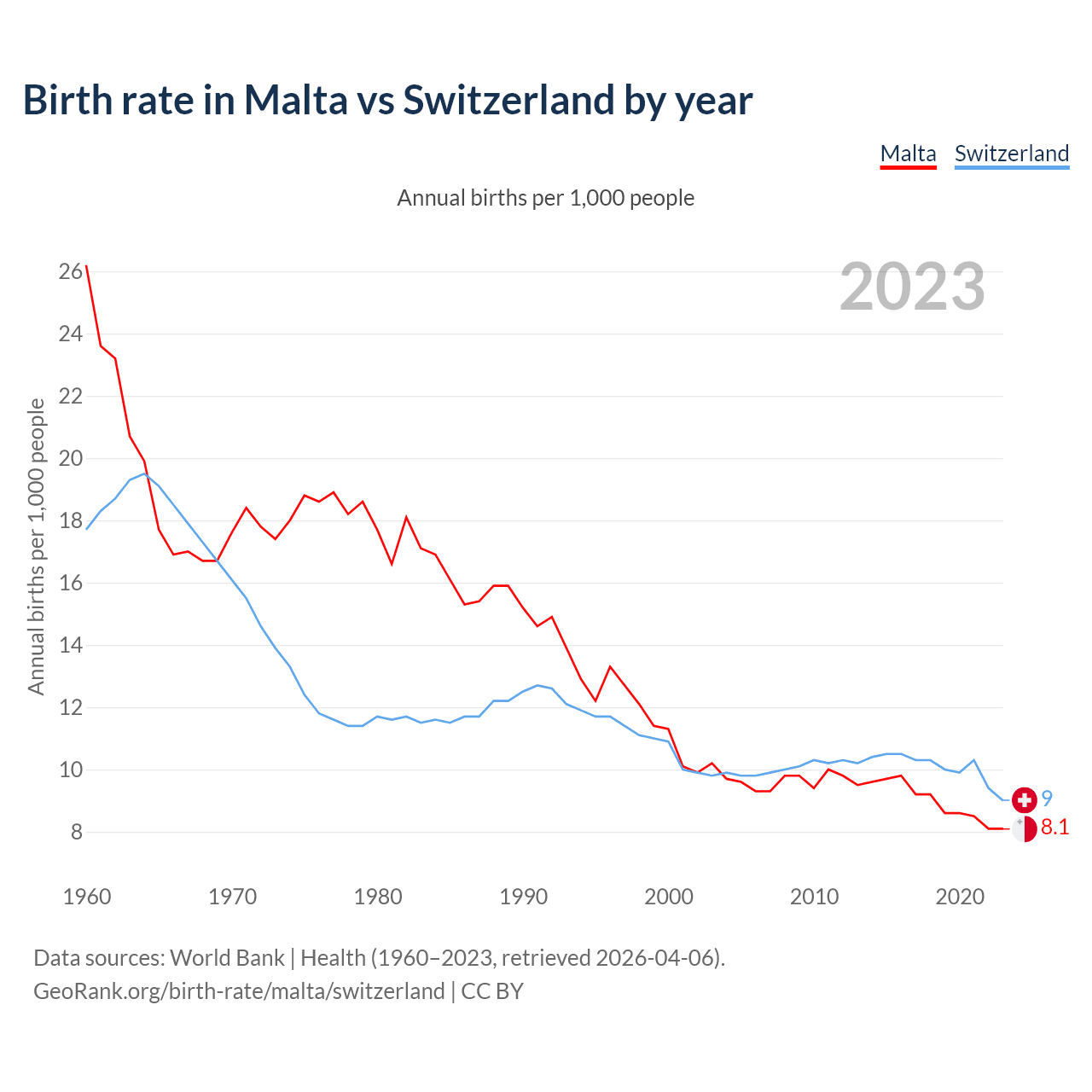 GeoRank.org/birth-rate/malta/switzerland | CC BY