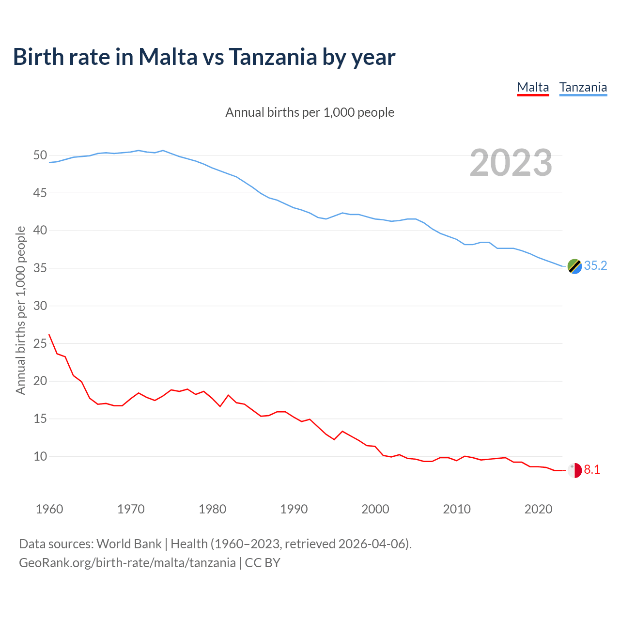GeoRank.org/birth-rate/malta/tanzania | CC BY