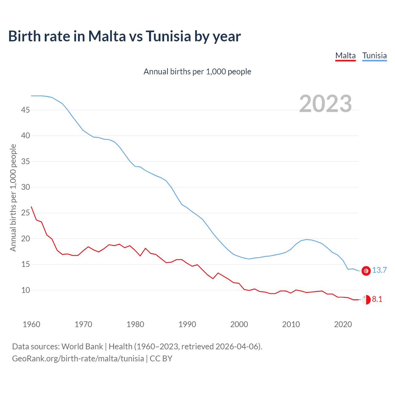 GeoRank.org/birth-rate/malta/tunisia | CC BY