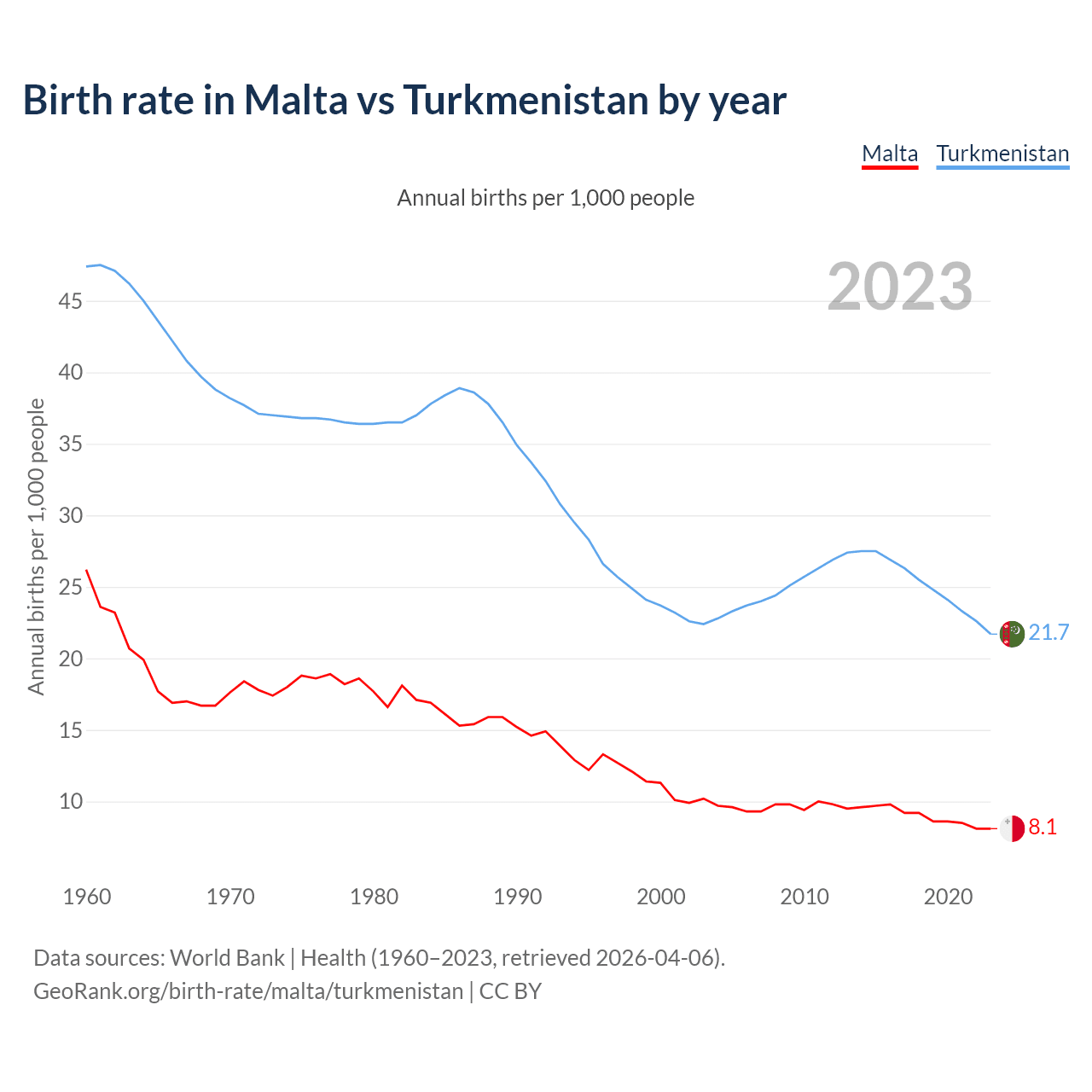 GeoRank.org/birth-rate/malta/turkmenistan | CC BY