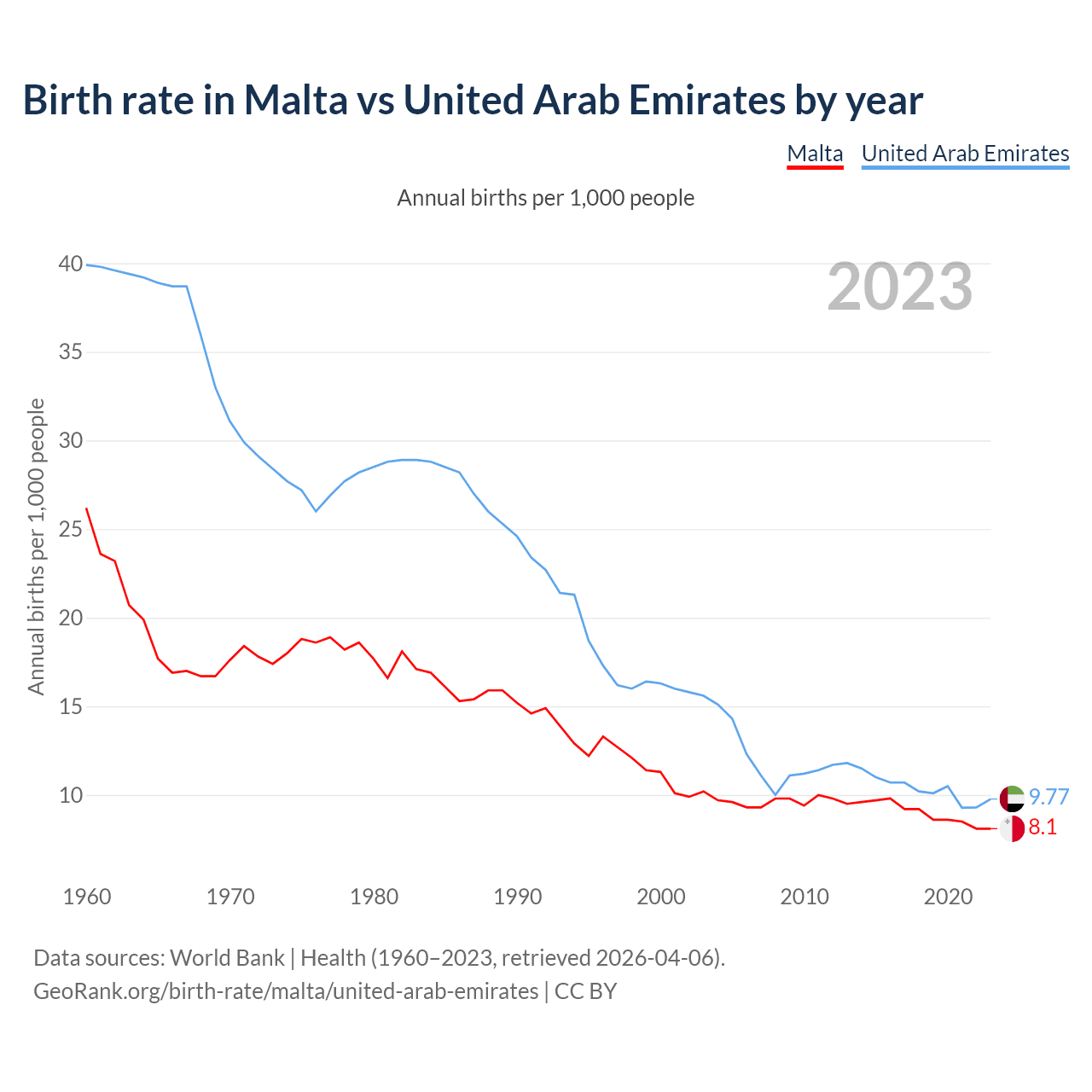 GeoRank.org/birth-rate/malta/united-arab-emirates | CC BY