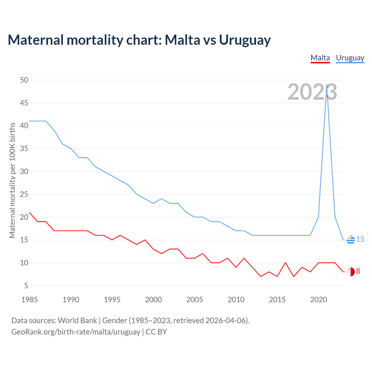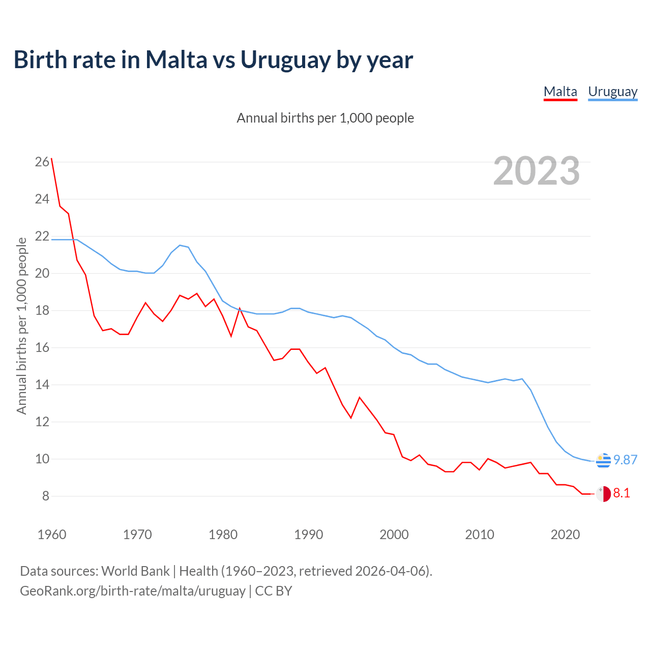 GeoRank.org/birth-rate/malta/uruguay | CC BY