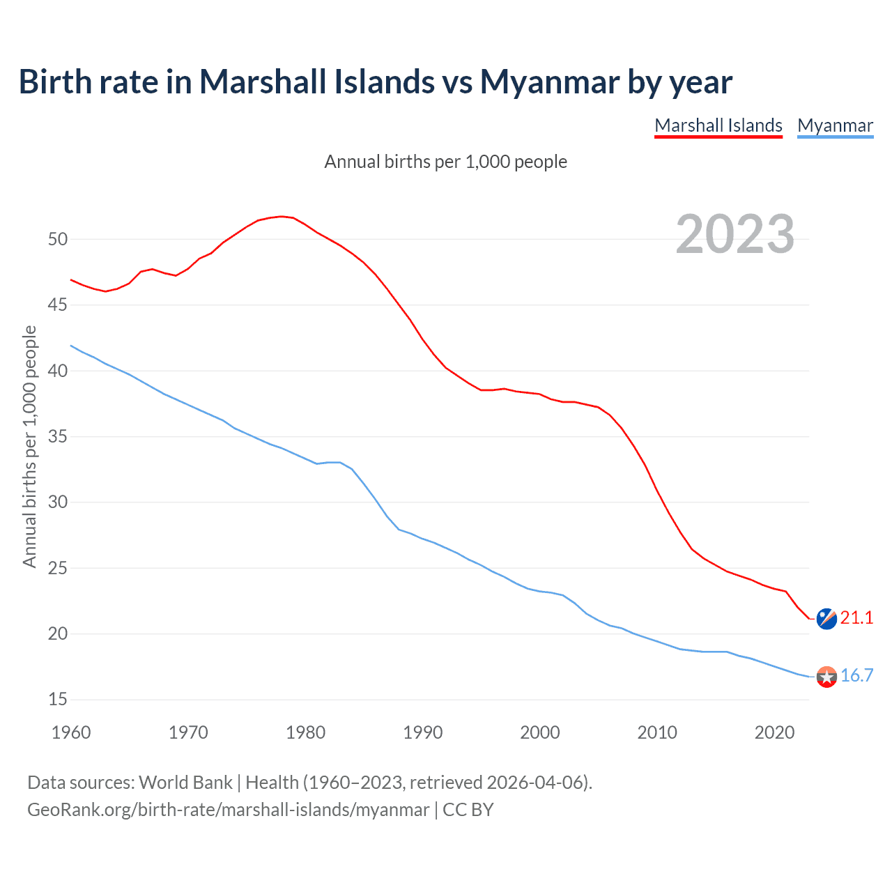 GeoRank.org/birth-rate/marshall-islands/myanmar | CC BY