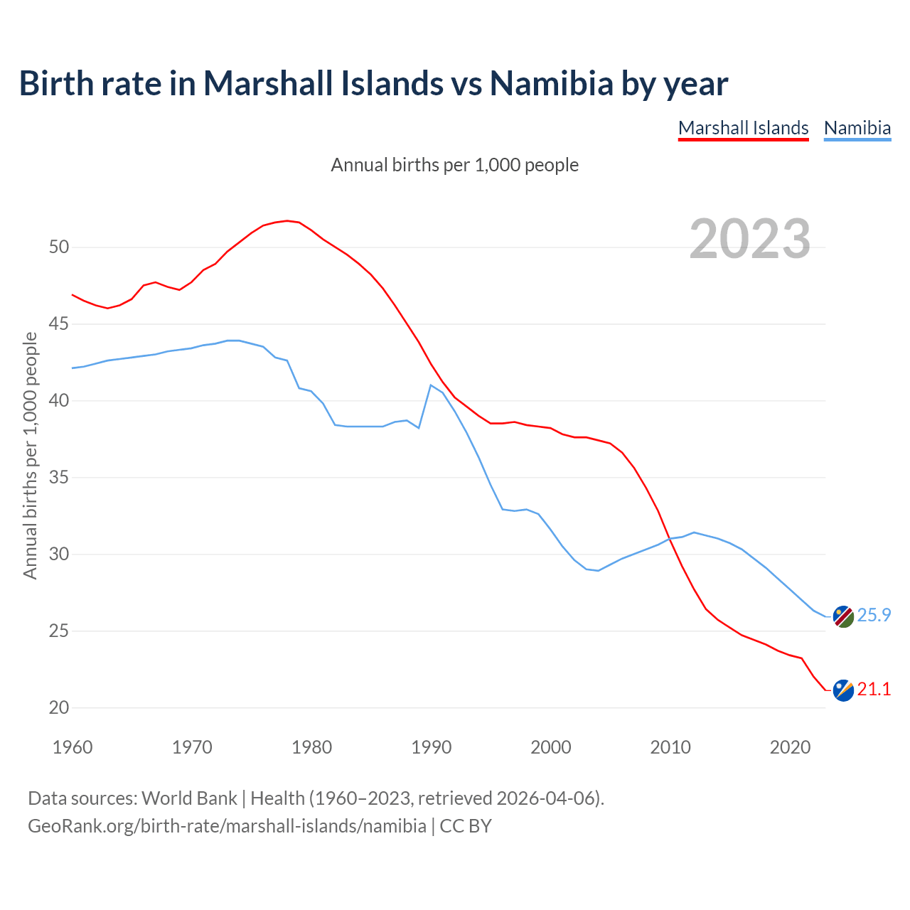 GeoRank.org/birth-rate/marshall-islands/namibia | CC BY