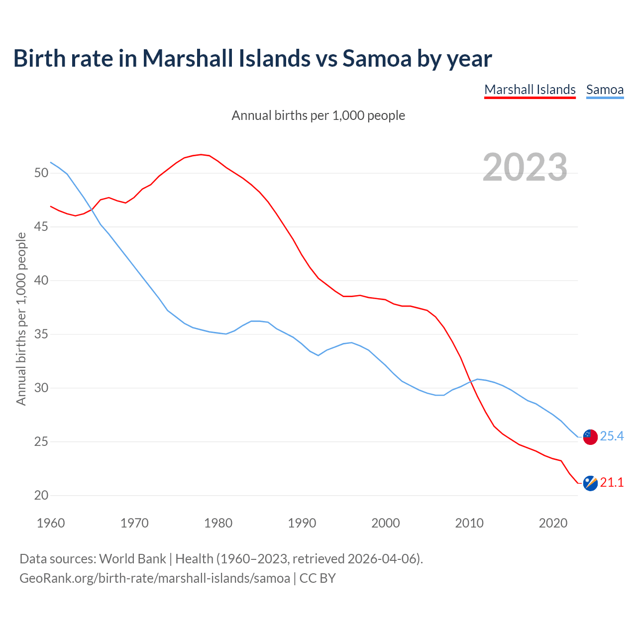 GeoRank.org/birth-rate/marshall-islands/samoa | CC BY