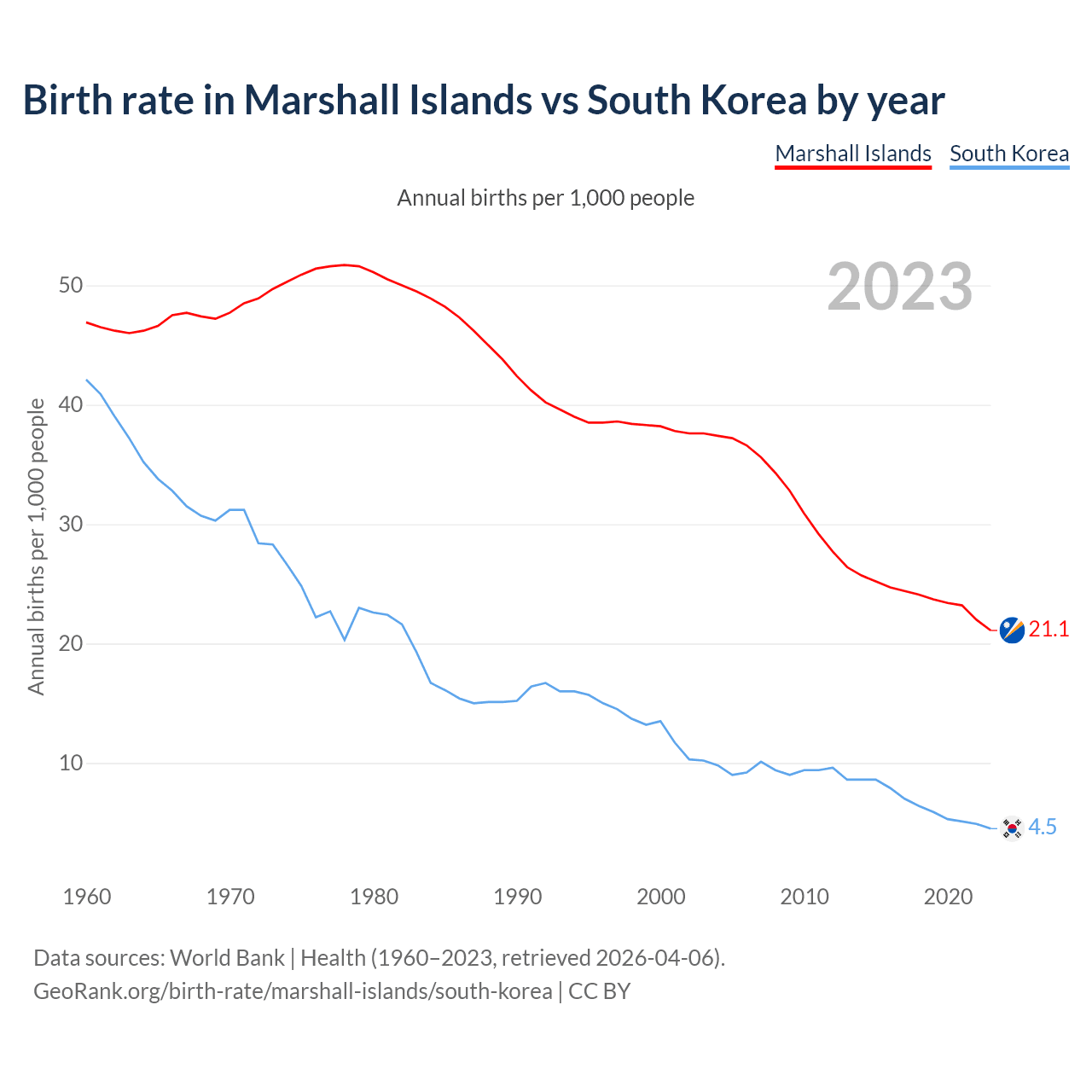 GeoRank.org/birth-rate/marshall-islands/south-korea | CC BY