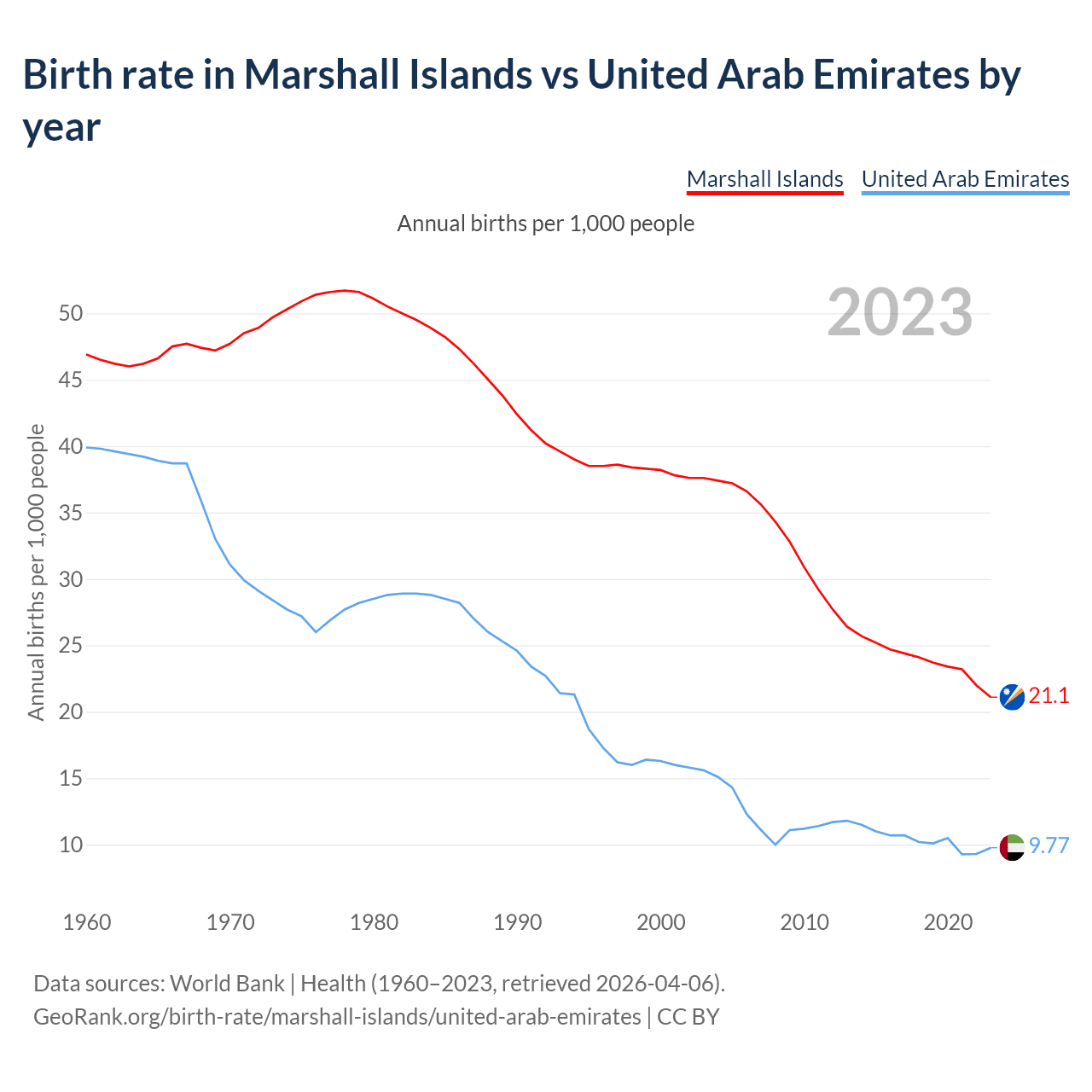 GeoRank.org/birth-rate/marshall-islands/united-arab-emirates | CC BY