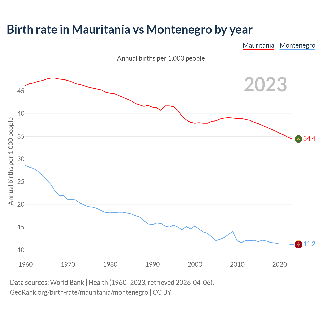 GeoRank.org/birth-rate/mauritania/montenegro | CC BY
