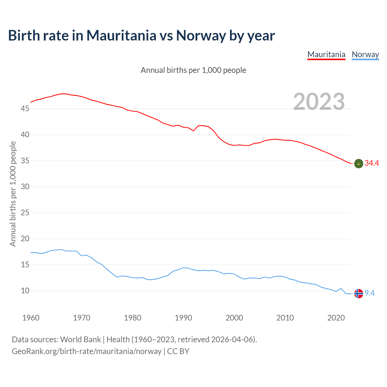 GeoRank.org/birth-rate/mauritania/norway | CC BY