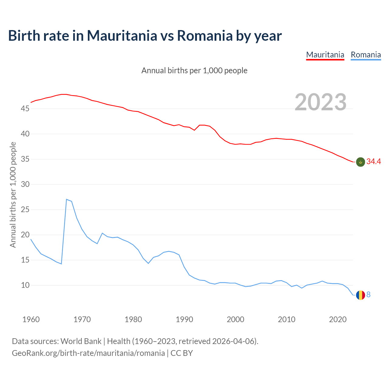 GeoRank.org/birth-rate/mauritania/romania | CC BY