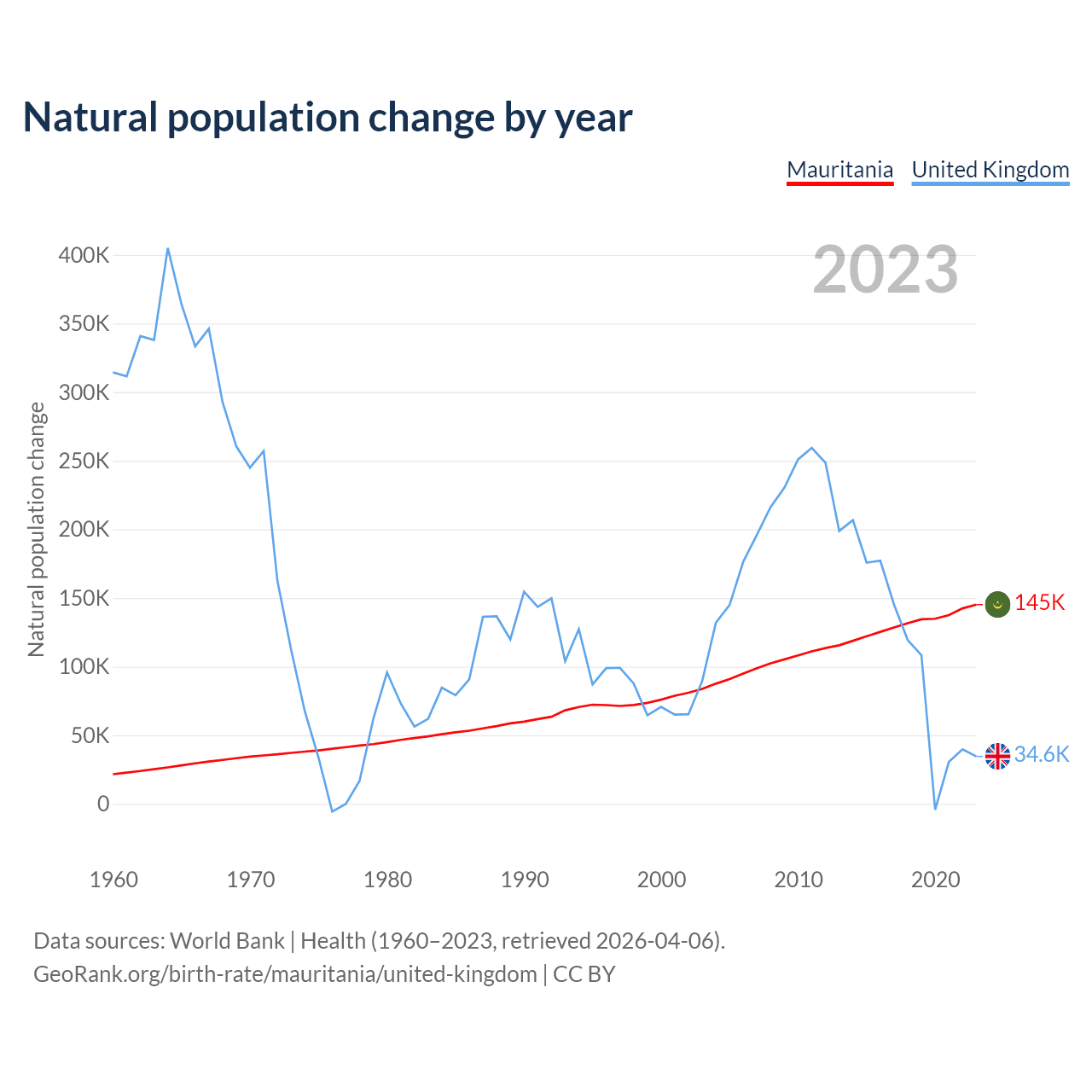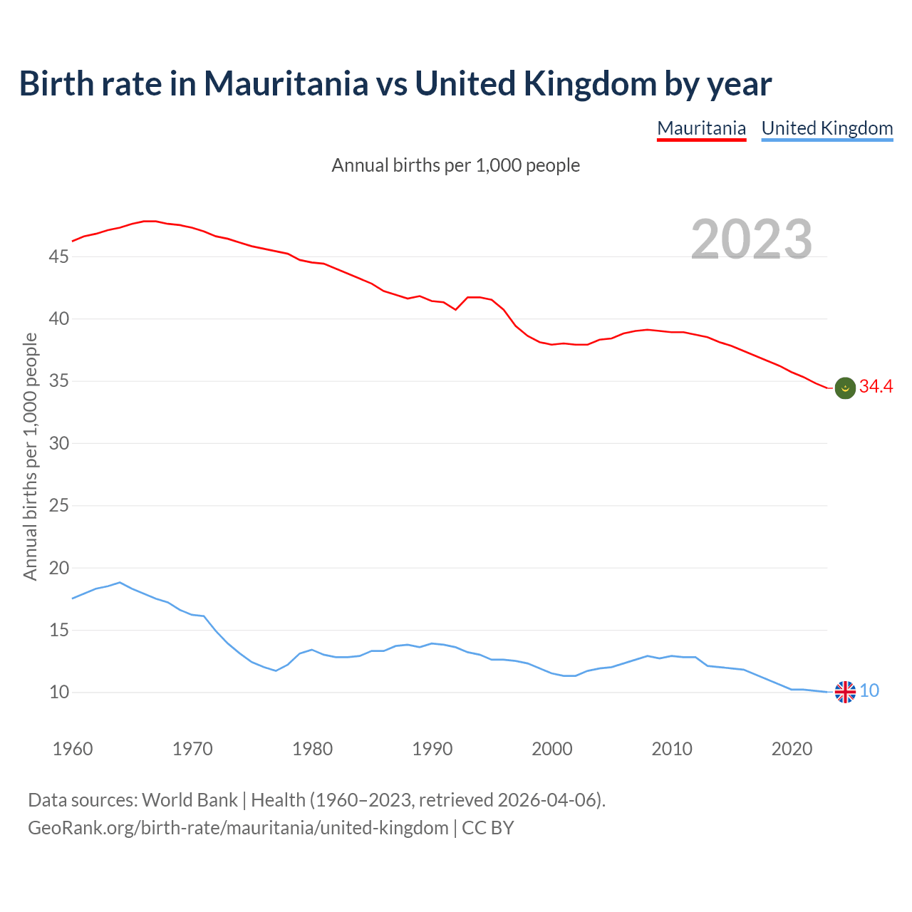 GeoRank.org/birth-rate/mauritania/united-kingdom | CC BY