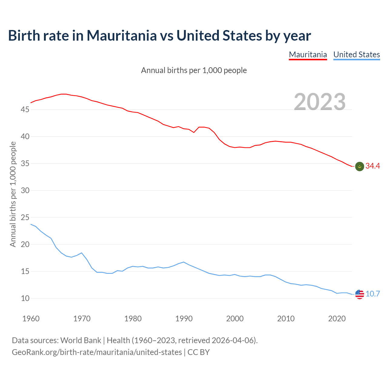 GeoRank.org/birth-rate/mauritania/united-states | CC BY