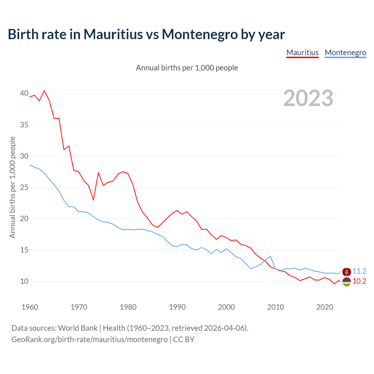 GeoRank.org/birth-rate/mauritius/montenegro | CC BY