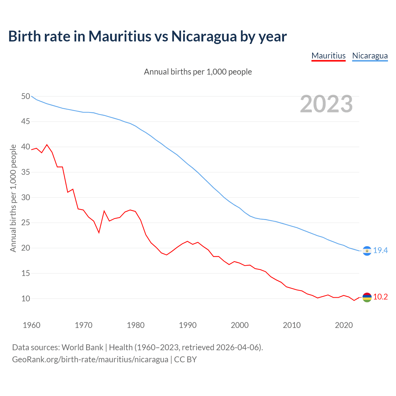GeoRank.org/birth-rate/mauritius/nicaragua | CC BY